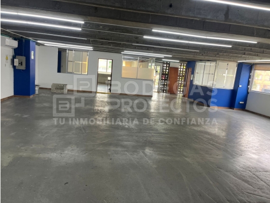 Bodega en segundo piso con malacate, área total de 300m2 ubicada en unidad cerrada, 1 parqueadero lineal propio y parqueadero en zonas comunes, zona de oficina con entrada independiente, planta abierta, cocineta, doble baño de mujeres y 1 baño de hombres.